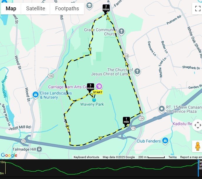 The one mile walk will be the same as in the past. Down the Waveny Park Rd (same as the 5k this year) and right to the turnaround past the pool at the half mile mark. Then back to the start.