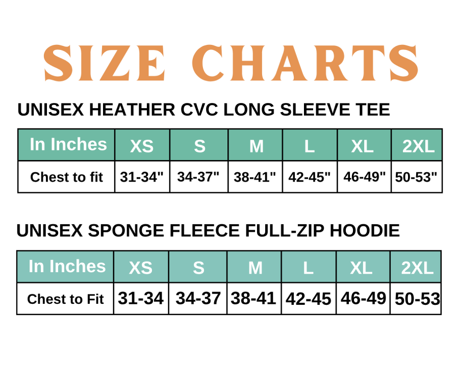 Review the unisex size charts below to select the correct shirt and/or hoodie size during registration.