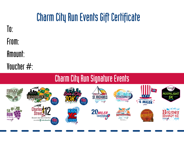Print out gift certificate and fill in "voucher number" and other details. Voucher number can be found on the confirmation email from RunSignup.