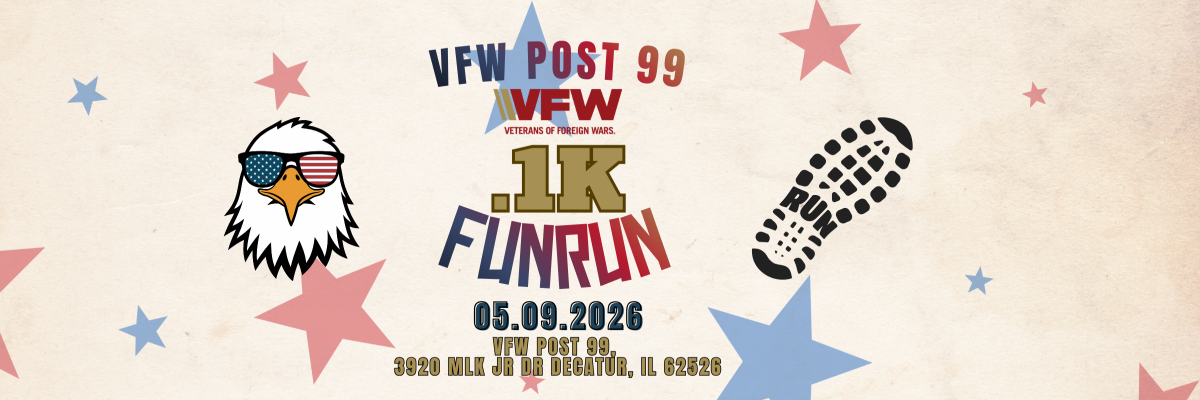 Join us for the first annual VFW post 99.1 K fun run, a lighthearted “race” that’s only 0.1 km (about 328 feet) - Perfect for all ages and fitness levels! This family, friendly event is all about having fun, supporting veterans, and bringing the community together.