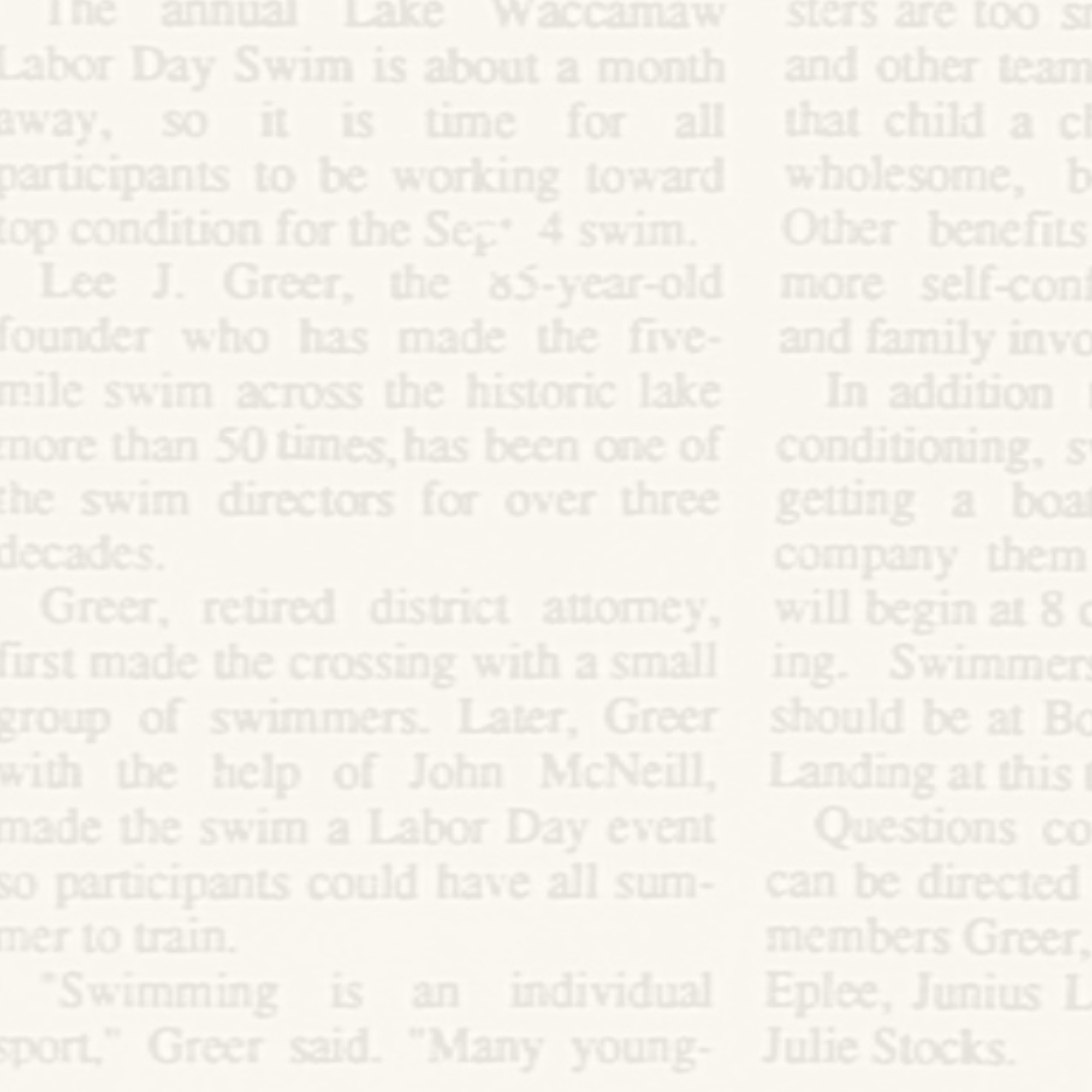 Our philosophy comes from Lee J. Greer himself: "The swim has never been regarded as a race... often the best efforts are made by those who are younger or less experienced. All who finish are winners."