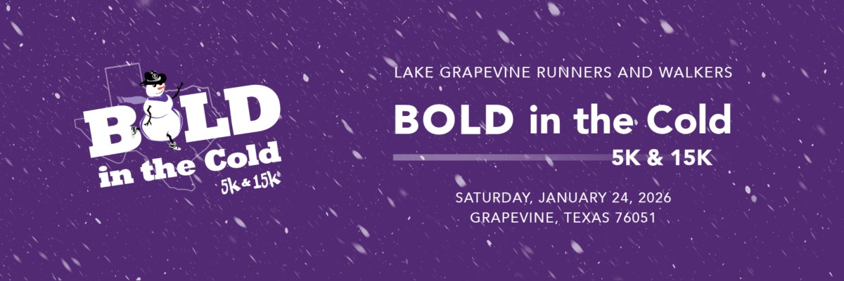 Join us for the 26th running of Bold in the Cold, Lake Grapevine Runners and Walkers (LGRAW) club's signature Winter event. Choose from a 5K or 15K race, both wind through the scenic C. Shane Wilbanks Trail along Lake Grapevine, offering breathtaking views of the lake.
